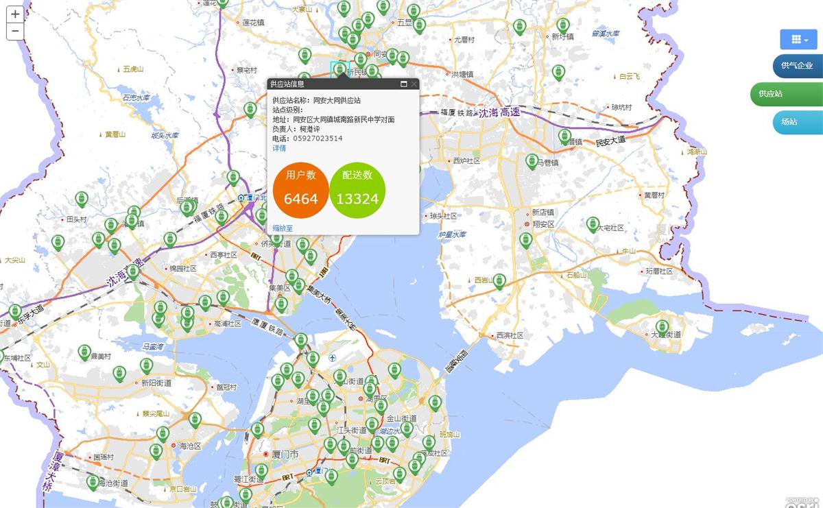 5)燃管中心GIS“一张图”应用,直观展示燃气设施设备等监管对象的分布情况;